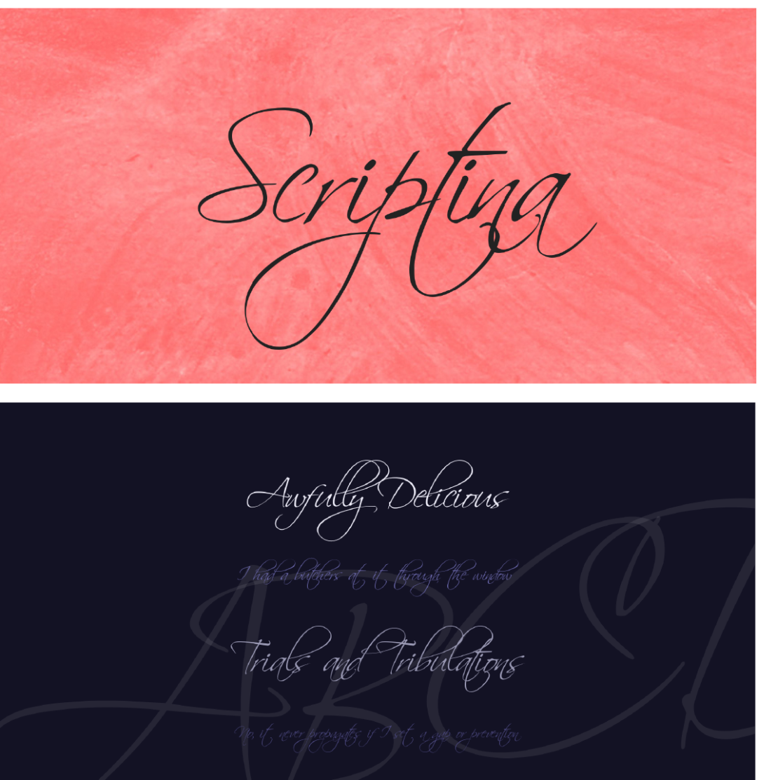 Script是为了表现手写文字风格而设计的字体。模仿用手写连笔字母样式,强调书写的速度和用笔的跌宕起伏,线条流畅、变化丰富。