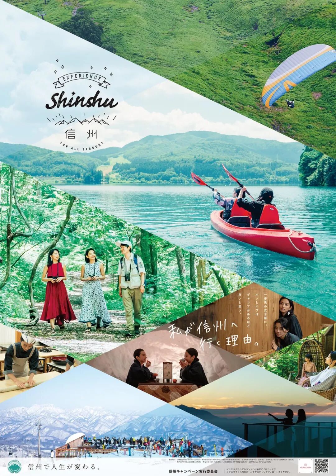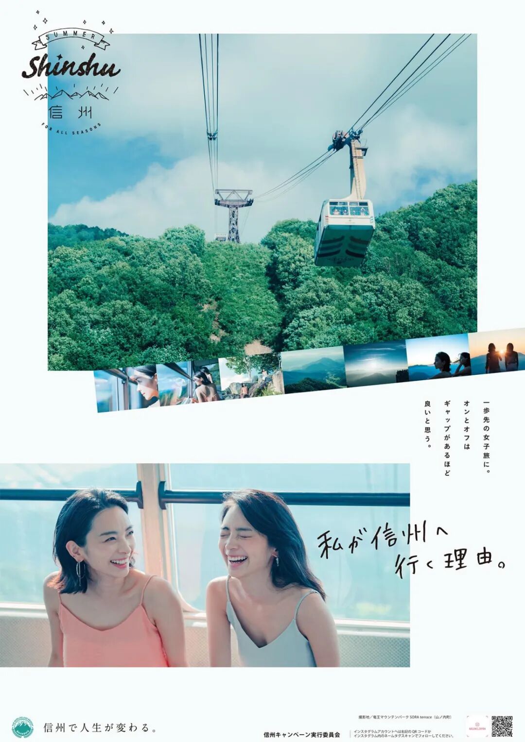 如果是风景图片采用分栏排版的手法,那么这些图片最好在结构上能够形成联系,比如下图海报中三张图片的地平线都是统一连贯的。